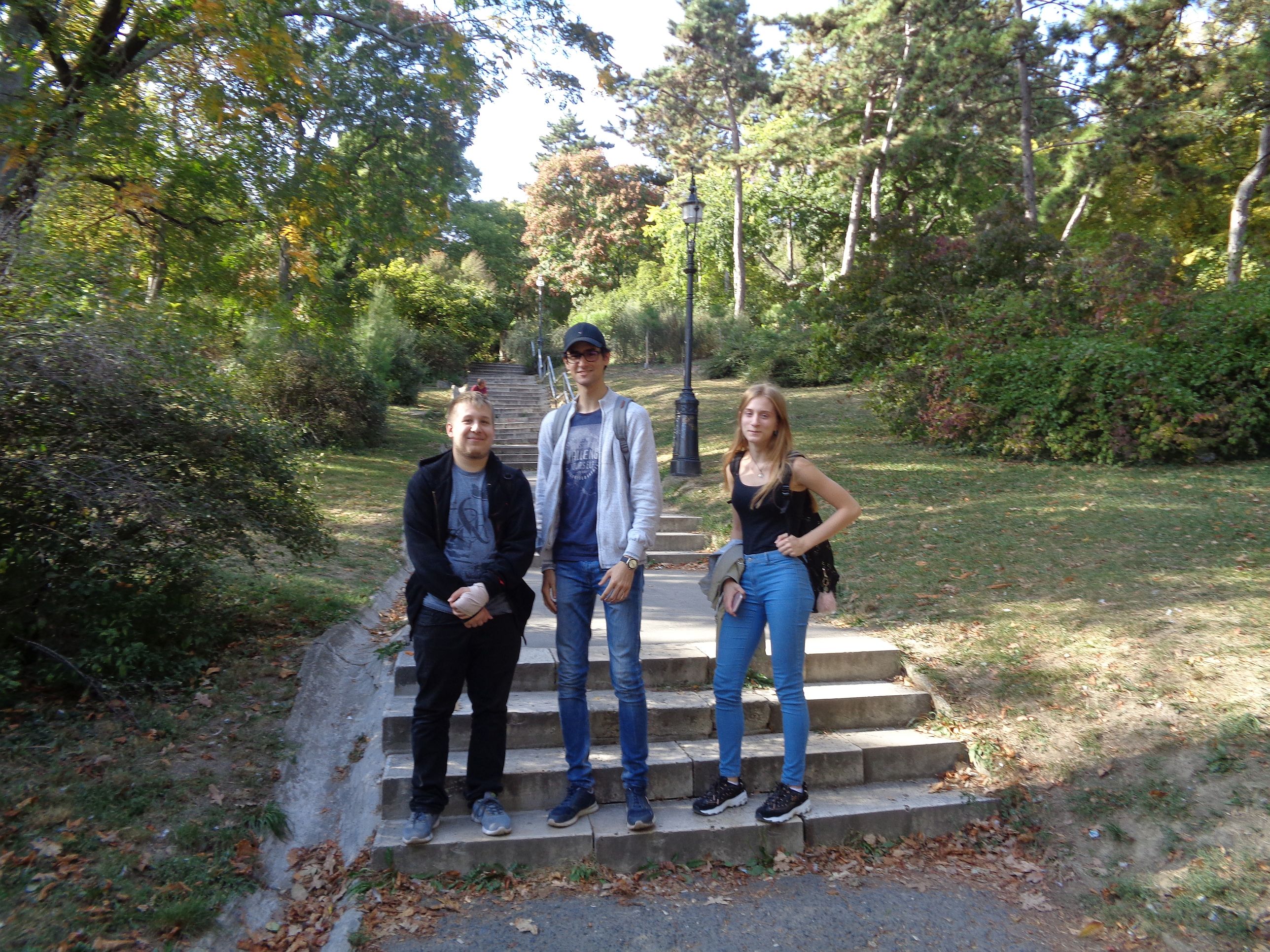 Kihasználva a kellemes időt Buda egyik legszebb, látnivalókban gazdag terére a XI. kerületi Szent Gellért térre esett a választásunk. Az iskolától a helyszínt természetesen gyalog,10 perces sétával közelítettük meg. A Szent Gellért püspök nevét viselő tér jelentős tömegközlekedési pont, alatta hőforrásokat találunk, amelyekből a Gellért Szálló fürdőjét látják el gyógyvízzel. Miután alaposan körbe néztünk a téren a szálló oldalában, a Kelenhegyi úton indultunk tovább a pálos Sziklatemplomhoz érve. Érdemes bemenni és megcsodálni a hegyoldalban elhelyezkedő templomot, de sajnos ezt most mi idő hiányában nem tettük meg. Visszatértünk a lépcsőhöz, majd elindultunk a hegyoldalba a Gellért-hegy természetvédelmi területére. Az egyik kis leágazó sétányon letértünk a "főútról", ahol a kiépített kilátón egy padon ülve a környezetvédelemmel kapcsolatos kettő darab érettségi esettanulmányt elemeztünk önállóan. Majd a kiosztott munkalapokat a helyszínen meg is beszéltük, miközben a panorámában is gyönyörködhettünk.